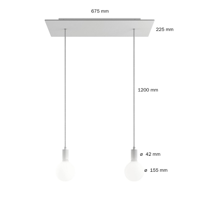 2-svetelné závesné svietidlo so 675 mm obdĺžnikovou rozetou. Táto závesná lampa s dvoma svetlami je k dispozícii v rôznych farebných kombináciách. Čierne alebo biele monochromatické kombinácie sa dobre hodia k modernému a modernému štýlu, zatiaľ čo verzie z brúseného kovu dodajú vášmu interiéru vintage a sofistikovaný vzhľad.