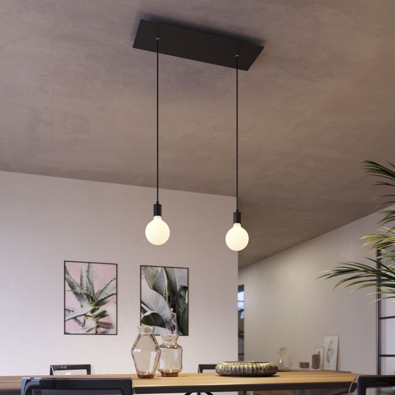 2-svetelné závesné svietidlo so 675 mm obdĺžnikovou rozetou. Táto závesná lampa s dvoma svetlami je k dispozícii v rôznych farebných kombináciách. Čierne alebo biele monochromatické kombinácie sa dobre hodia k modernému a modernému štýlu, zatiaľ čo verzie z brúseného kovu dodajú vášmu interiéru vintage a sofistikovaný vzhľad.