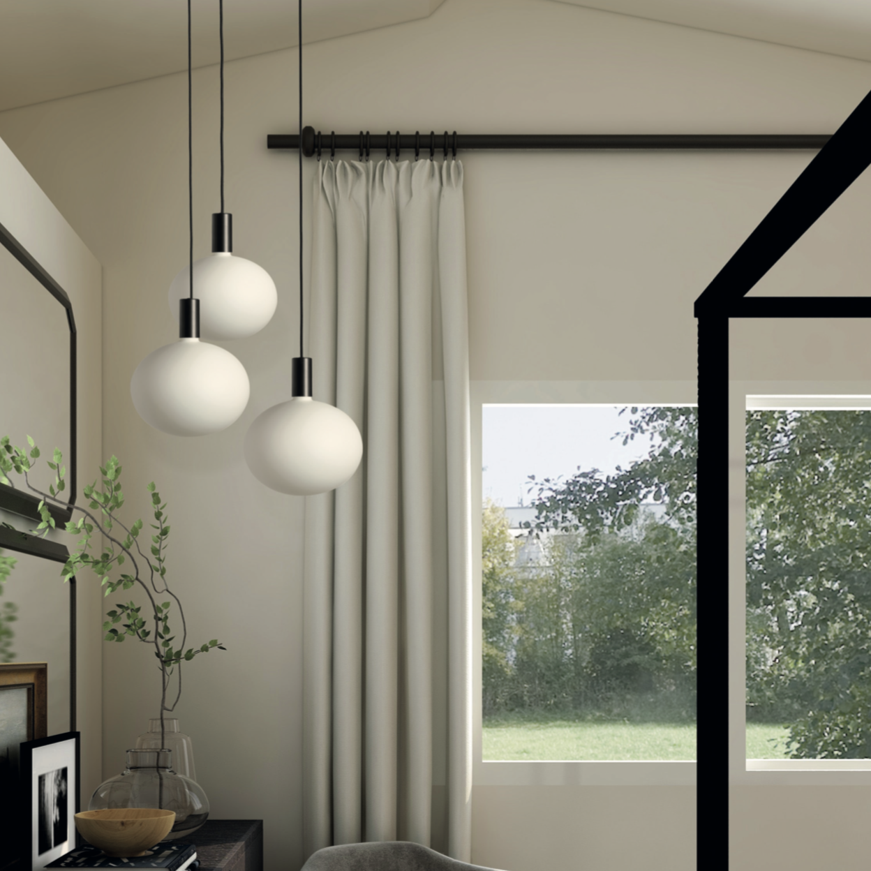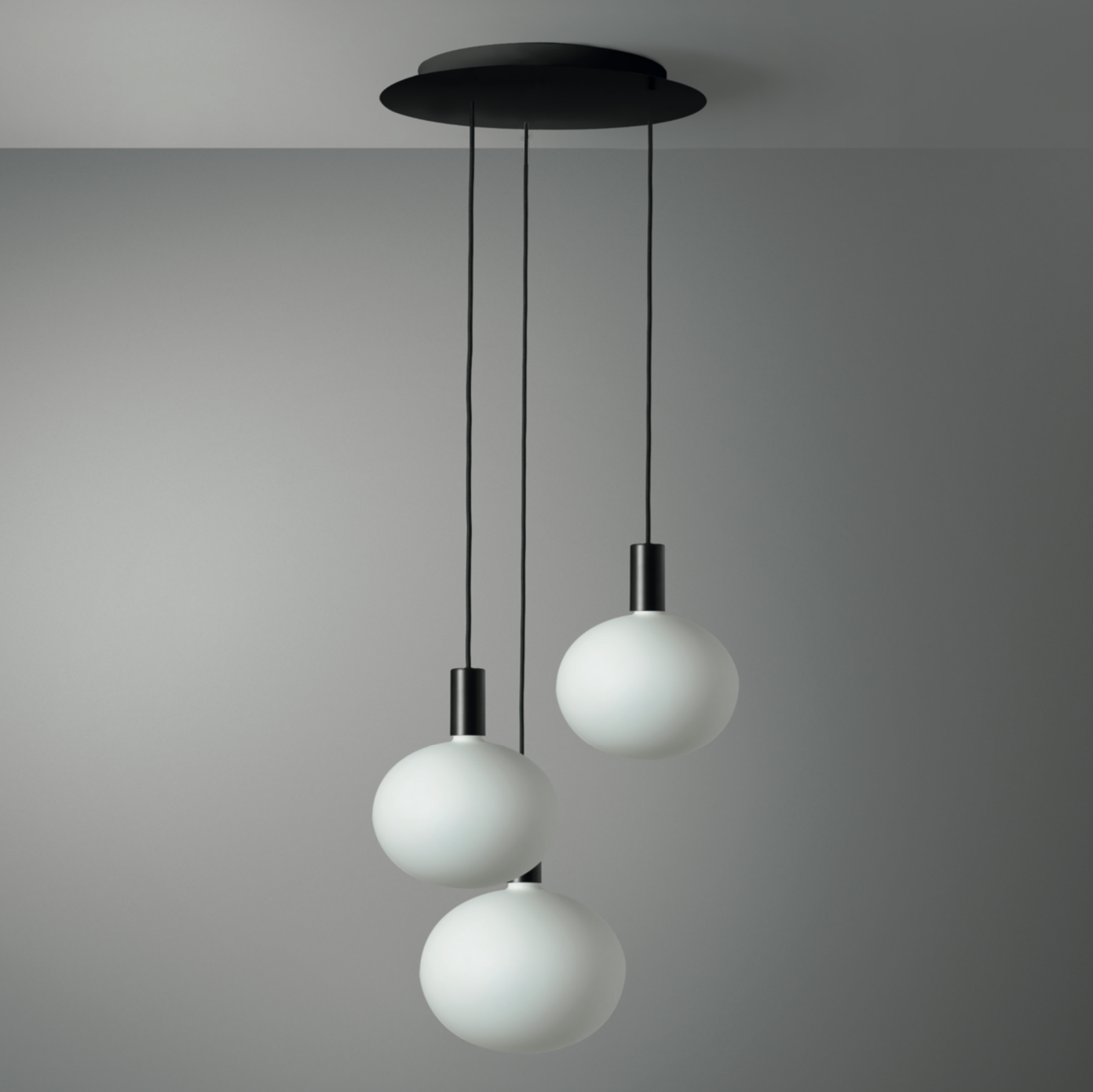3-svetelné závesné svietidlo ROMA v čiernej farbe. 3 Závesné svietidlá vychádzajúce z veľkej stropnej rozety s 3 rovnakými žiarovkami. Obzvlášť vhodné pre veľké prostredia, ako sú haly, salóniky, spálne. Môžete si vybrať rôzne modely z elegantne navrhnutých žiaroviek s mimoriadnym vizuálnym komfortom. Tieto kombinácie sa vyznačujú žiarovkami s povrchovou úpravou podobnou porcelánu, ktoré dávajú štruktúre veľmi rafinovaný vzhľad a majú rozptýlený, rovnomerný, veľmi relaxačný a zároveň intenzívny svetelný efekt. Žiarovky s povrchovou úpravou podobnou krištáľu majú žiarivejšie, živšie a ostrejšie svetlo. Obidve riešenia ponúkajú vysoké farebné podanie a možnosť zmeny intenzity svetla ( v prípade že máte zabudovaný vlastný stmievač alebo si dokúpite stmievač z nášho sortimentu).