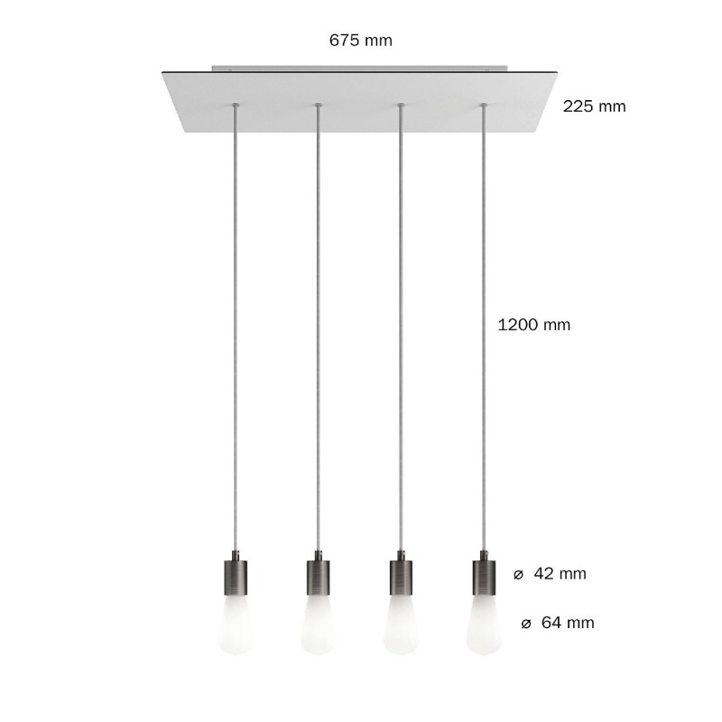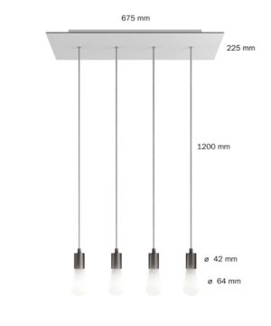 4-svetelné závesné svietidlo so 675 mm obdĺžnikovou rozetou. Táto závesná lampa s tromi svetlami je k dispozícii v rôznych farebných kombináciách. Čierne alebo biele monochromatické kombinácie sa dobre hodia k modernému a modernému štýlu, zatiaľ čo verzie z brúseného kovu dodajú vášmu interiéru vintage a sofistikovaný vzhľad.