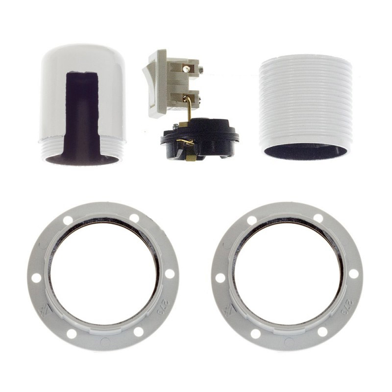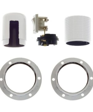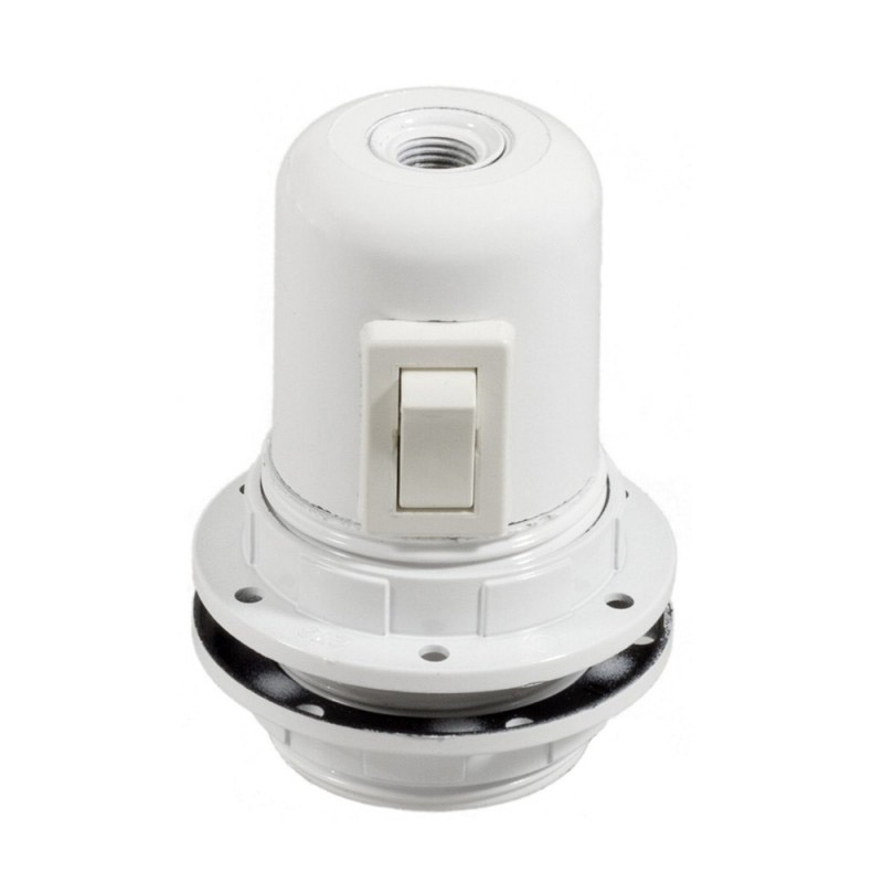 Bakelitová objímka E27 s vypínačom a krúžkami pre tienidlo. Vypínač umožňuje zapínanie a vypínanie svetla priamo na objímke, vďaka čomu z nej môžete vyrobiť závesnú alebo stolnú lampu s vlastným spínačom. Vyrobená v Taliansku a je certifikovaná v súlade s najprísnejšími európskymi normami (IMQ-ENEC).
