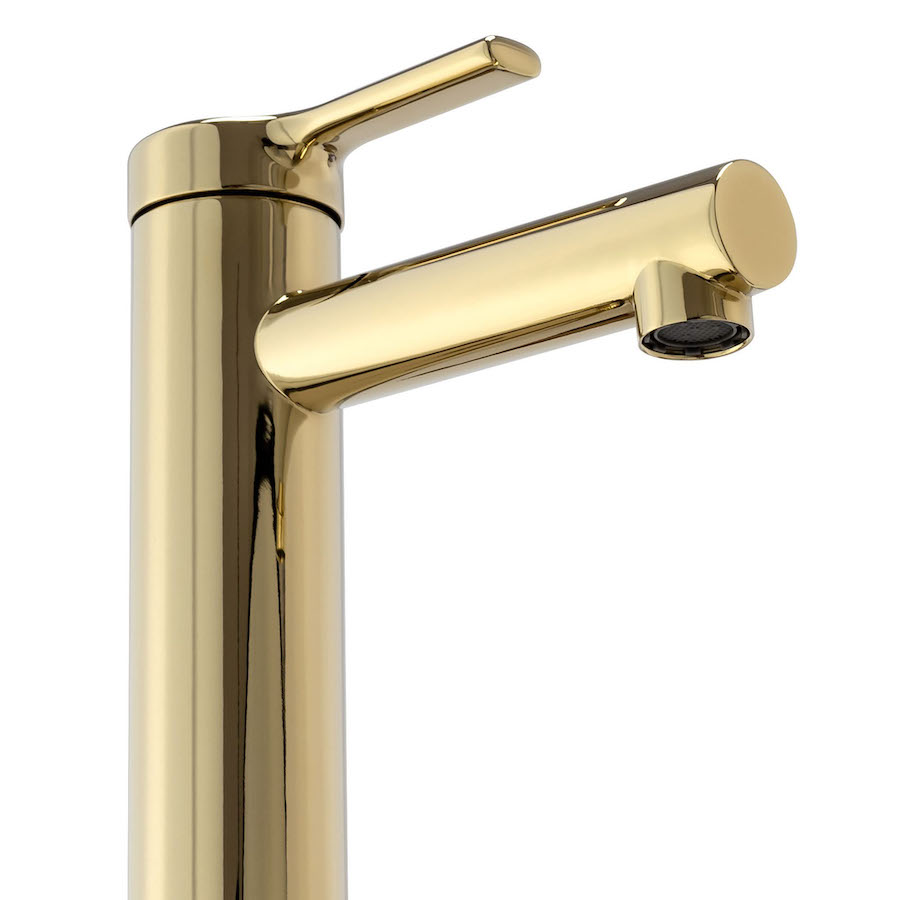 Predstavujeme Vám novú mimoriadne designovú a veľmi modernú kúpeľňovú umývadlovú batériu. Táto batéria sa dokonale hodí do Vašej kúpeľne, kde vyplní priestor a pritom zachová krásny vzhľad a estetiku interiéru. Batéria je určená na montáž na umývadlo a vďaka špeciálnej fáze výroby je batéria veľmi odolná a ľahko sa čistí. Dokonale sa hodí k ostatným prvkom interiérov, zariadených v klasickom aj modernom štýle. Moderná nízka umývadlová batéria je vyrobená z vysoko kvalitnej mosadze s úpravou v elegantnom lesklom zlatom prevedení.