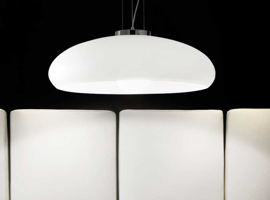 Biely sklenený závesný luster ARIA SP1 z fúkaného skla leptaného kyselinou.