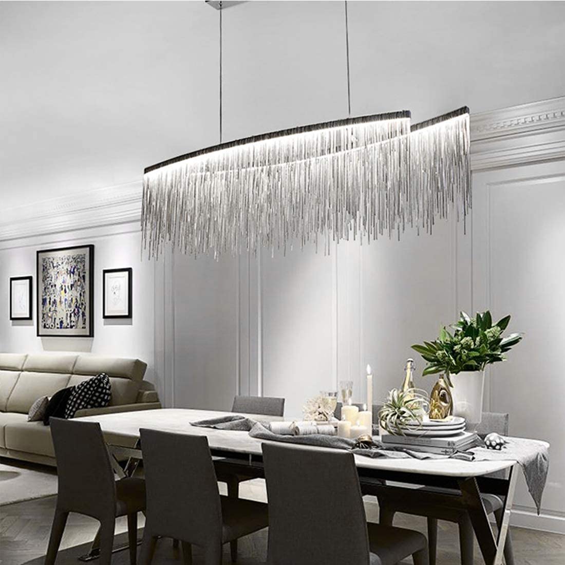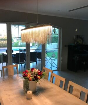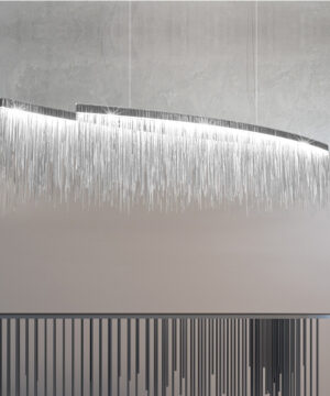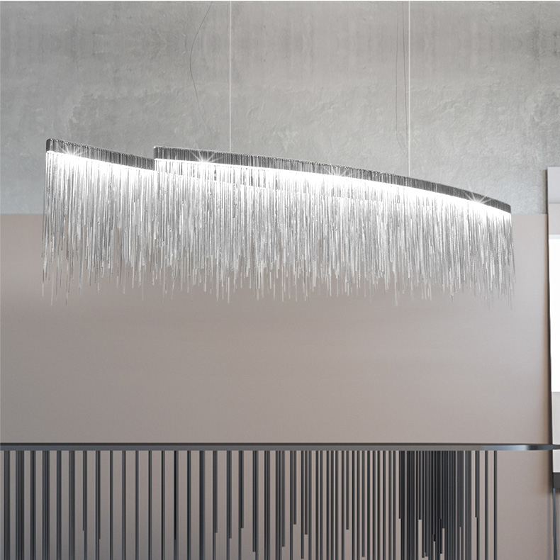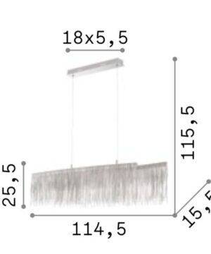 Chrómový luxusný luster s dekoratívnymi prvkami VERSUS SP OVAL.Chrómový kovový rám. Dekoratívne prvky sú vyrobené z retiazok so štvorcovými okami. Dĺžka oceľových drôtov je nastaviteľná s automatickým blokovacím mechanizmom.