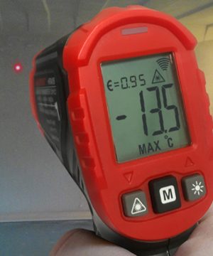 Pyrometer sa vyznačuje rýchlou odozvou 0,5 sekundy. Presný snímač umožňuje vysokú presnosť v rozsahu -40°C~400°C. Je ľahké vidieť, kde je laserový lúč a kde je potrebný.