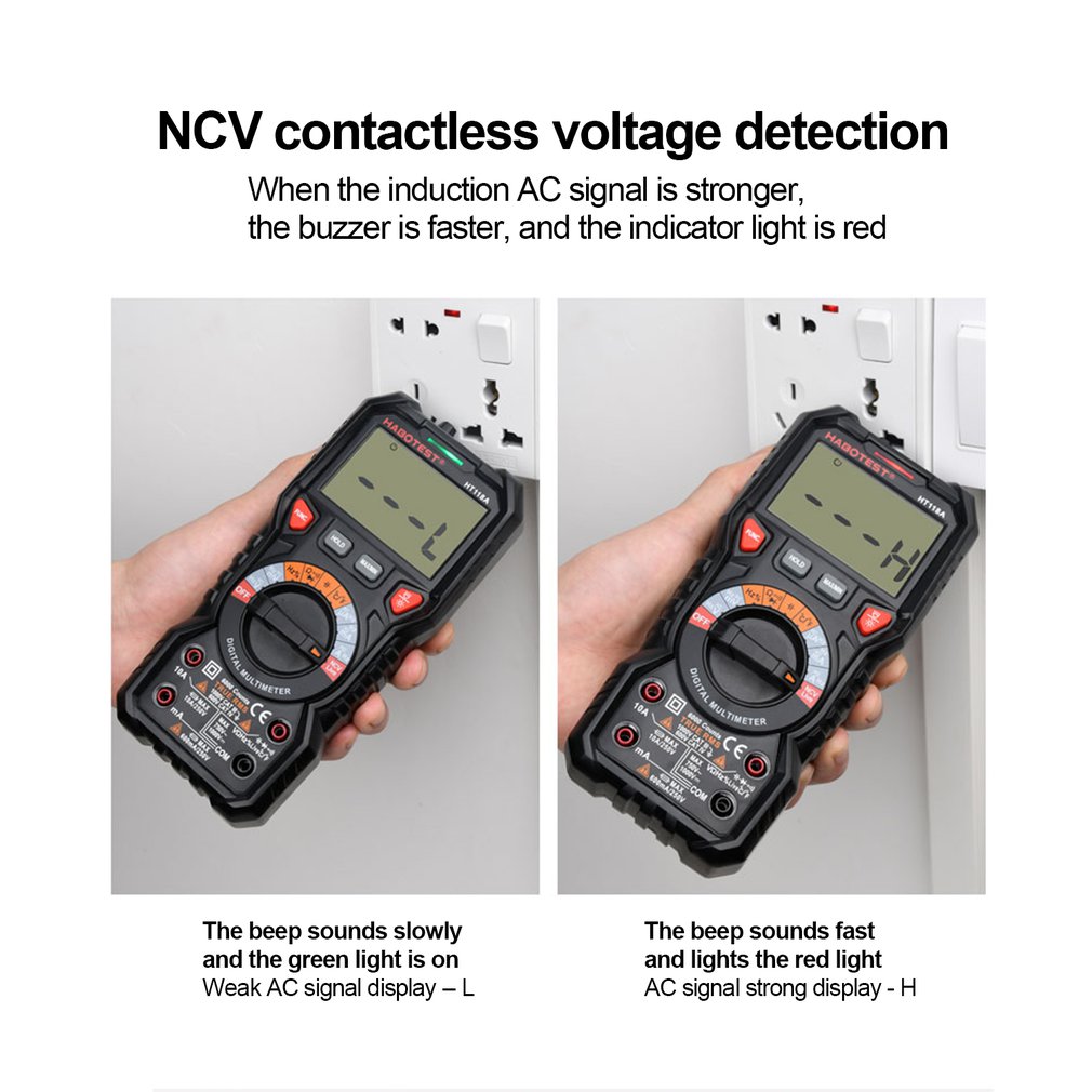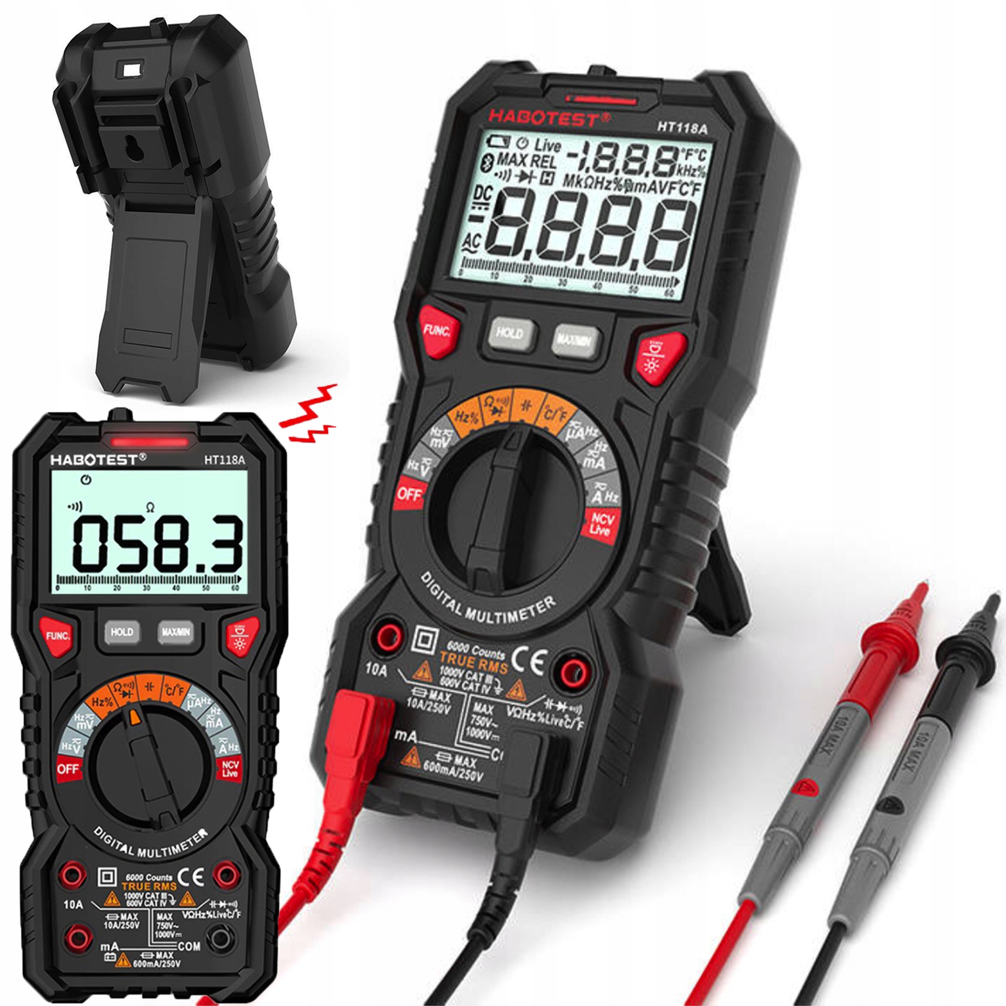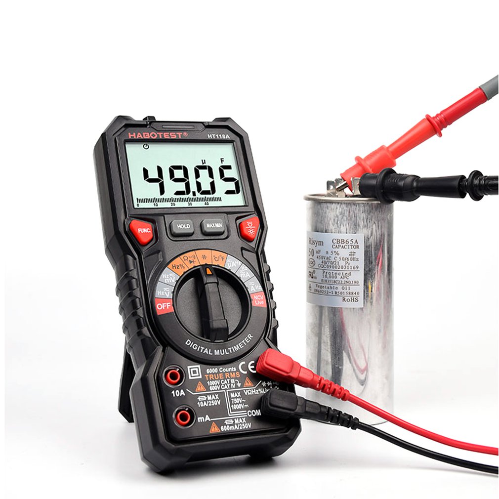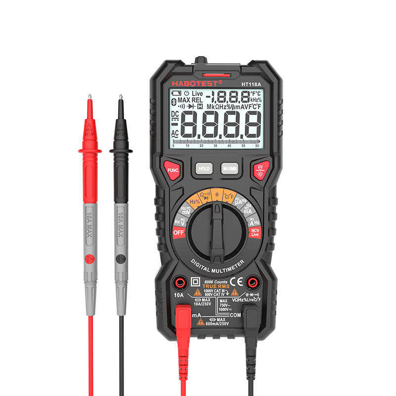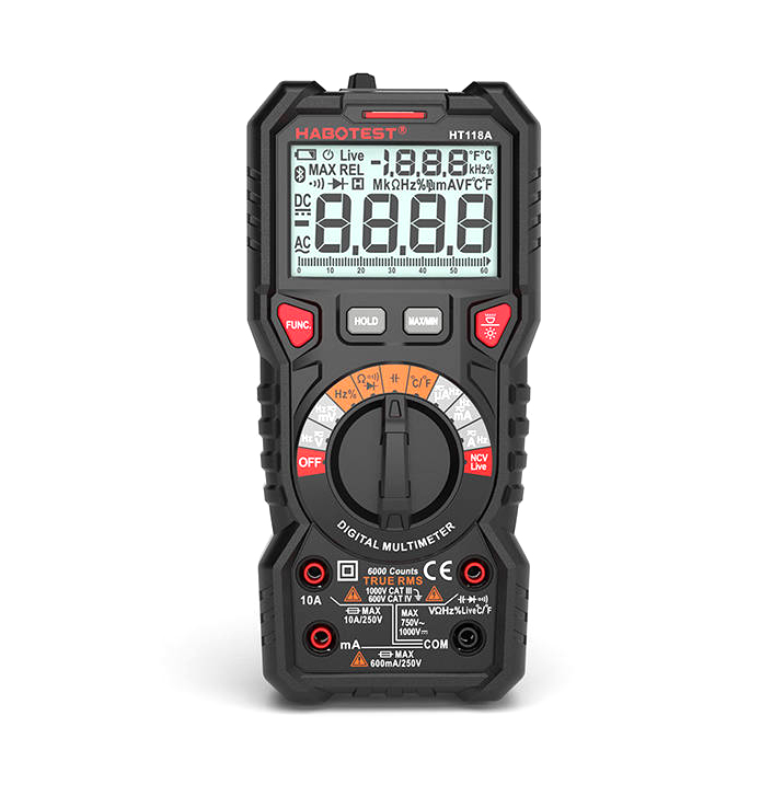HT118A má mnoho užitočných funkcií. Môžete ho použiť okrem iného na meranie striedavého a jednosmerného napätia, kapacity a teploty od -40°C do 1000°C. Môžete tiež skontrolovať, či je kábel pod napätím, a skontrolovať jeho kontinuitu. Ale toto nie je koniec možností! Merač umožňuje aj bezdotykové meranie napätia (NCV).