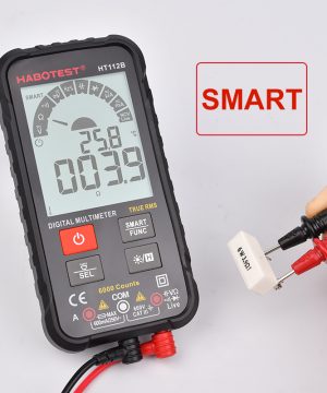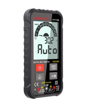 HT112B je ultratenký inteligentný multimeter novej generácie. Vybavený veľkým 2,88″ displejom a silikónovými tlačidlami – jeho používanie je jednoduché a pohodlné. Poskytuje presné meranie rôznych parametrov. Kompaktný a ľahký – má tiež LED baterku, ktorá vám umožní pracovať aj na tmavých miestach. Pre svoje napájanie vyžaduje 2 batérie CR2302 3V.
