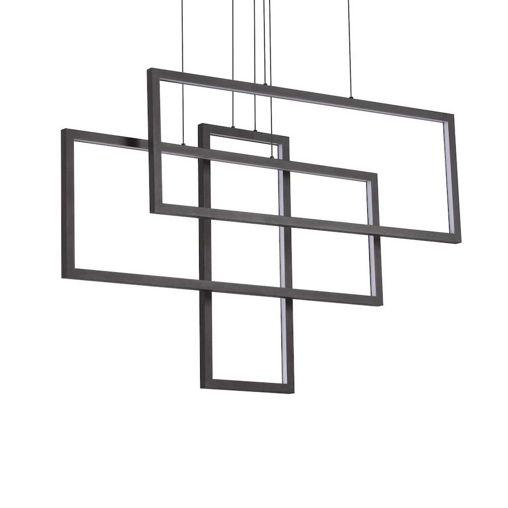 Dizajnový závesný LED luster FRAME SP RETTANGOLO má matnú bielu alebo čiernu lakovanú kovovú rozetu a rám. Plastové difúzory opálovej farby. Nastaviteľná dĺžka káblov.
