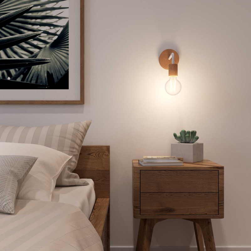 Drevené nástenné svietidlo z prírodného dreva je perfektné nástenné svetlo na osvetlenie vašich interiérov. Ak hľadáte svetlo, ktoré je ideálne pre vaše luxusné priestory, ako sú chodby, vstupné priestory, obývaciu izbu, ale taktiež bary a bistrá, toto riešenie uspokojí vaše potreby. Táto lampa je vyrobená z drevenej rozety, kovovej rúrky a drevenej objímky E27. Môže byť nakonfigurovaná ako jedno alebo dvojité nástenné svietidlo. Ku svietidlu sú vhodné luxusné žiarovky značky Daylight Italia, ktoré nájdete v našom obchode.