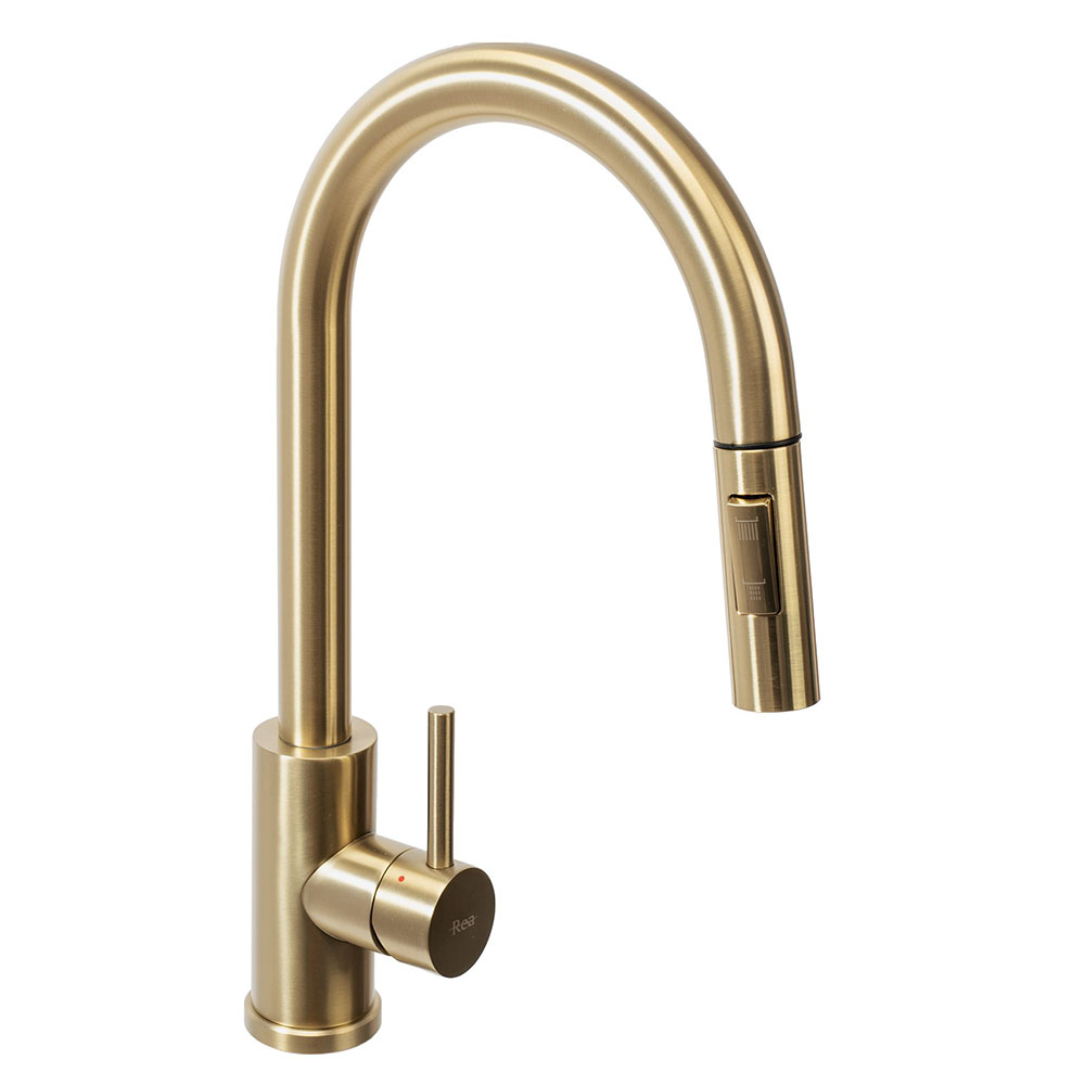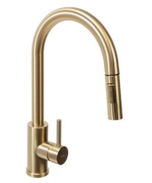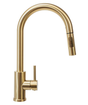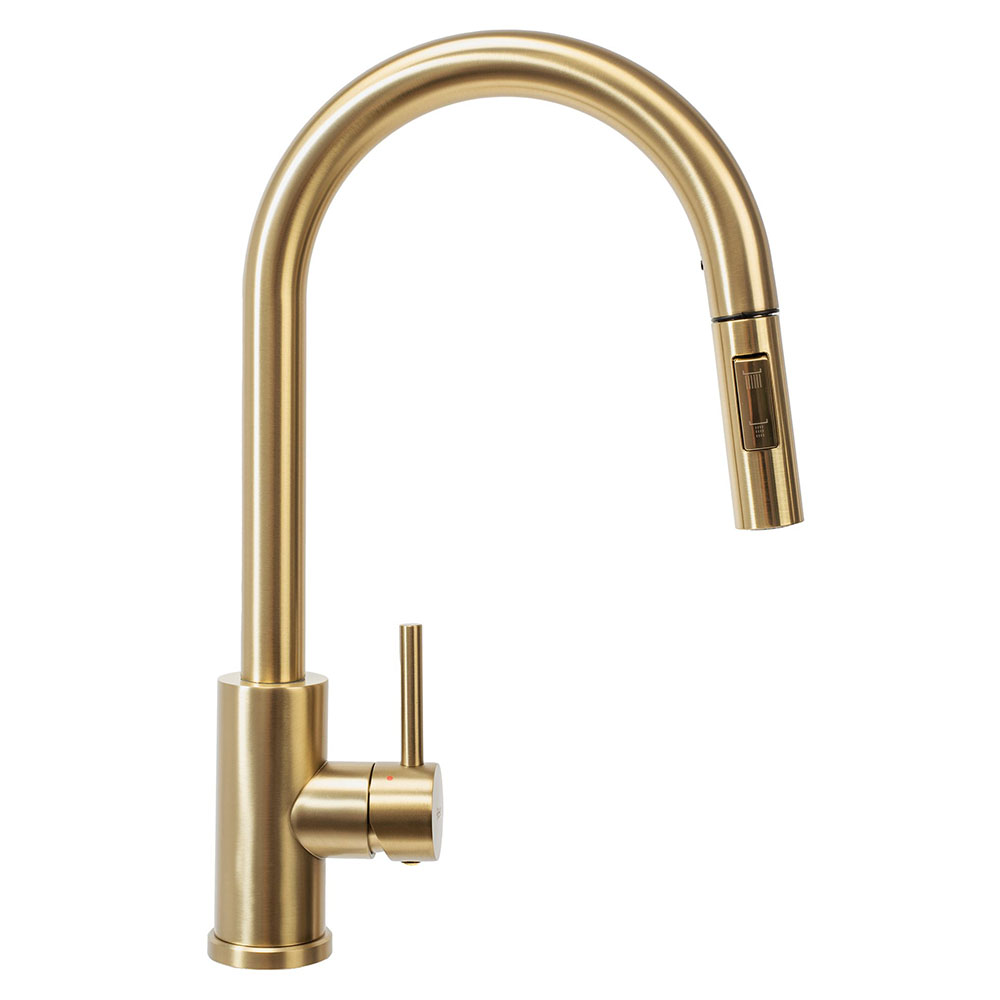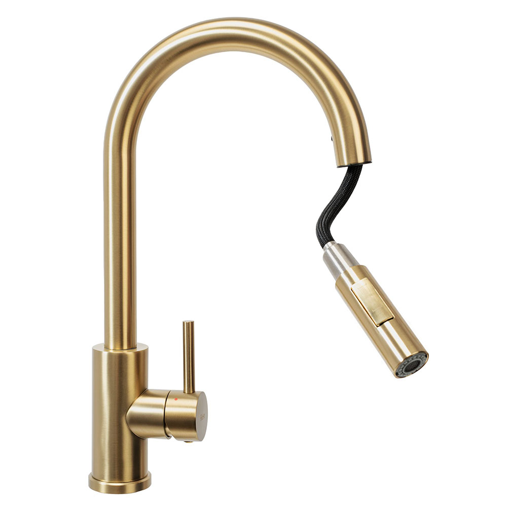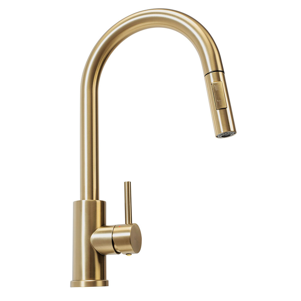Drezová batéria s vyťahovacou spŕškou v brúsenej zlatej farbe