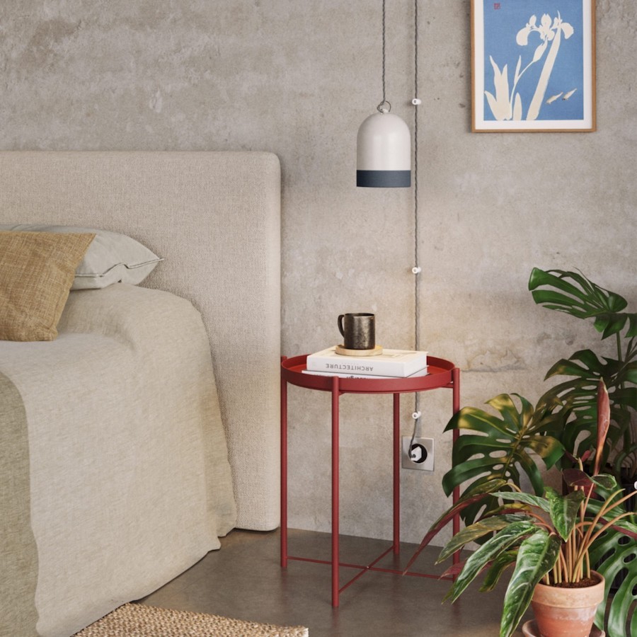 Závesná lampa Ellepi s textilným káblom a 40cm tienidlom, hrdzavá farba