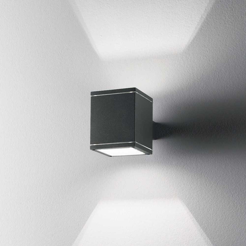 Exterierové svietidlo SNIF AP1 SQUARE má lakované telo z tlakovo liateho hliníka. Transparentný pyrexový sklenený dvojitý difúzor svietiaci nahor a nadol. Dostupné povrchové úpravy: antracit, biela, sivá alebo čierna.