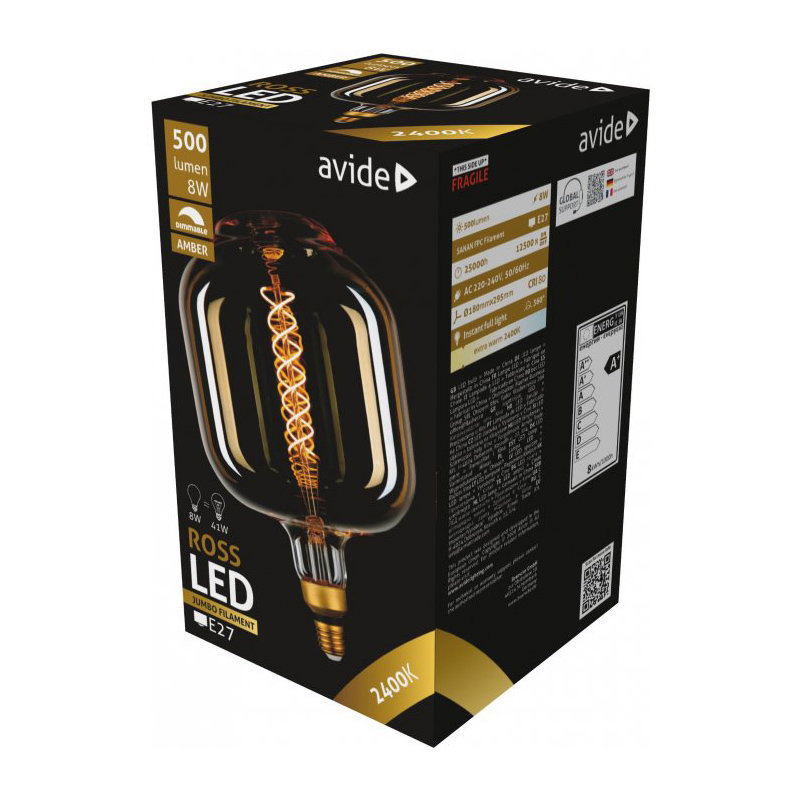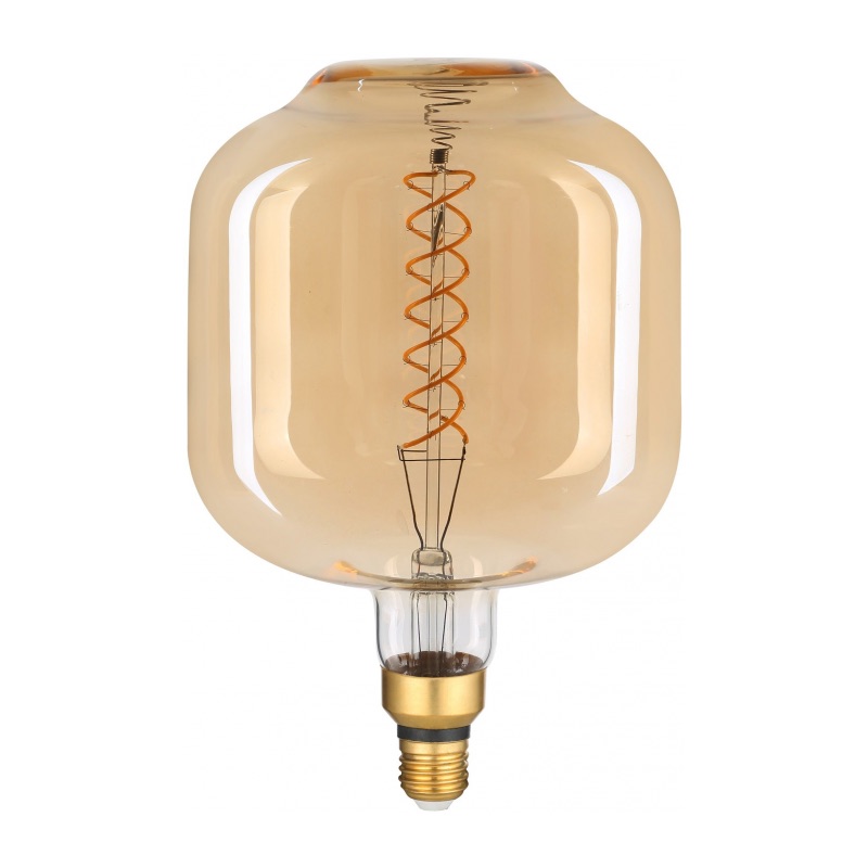 Dekoratívna XXL LED Filament žiarovka s unikátne tvarovaným vláknom filament s vysokou životnosťou a nízkou stratou intenzity. Prvotriedny dizajn sklenenej banky upúta pozornosť každého zvedavca. Obzvlášť vhodné do komerčných kaviarní a obchodov pokiaľ si želáte zaujať. Skvele funguje ako pútač pozornosti.