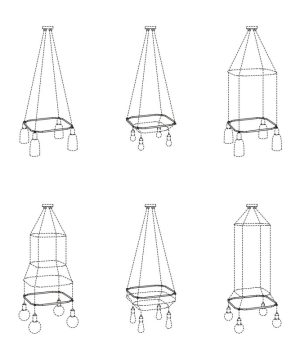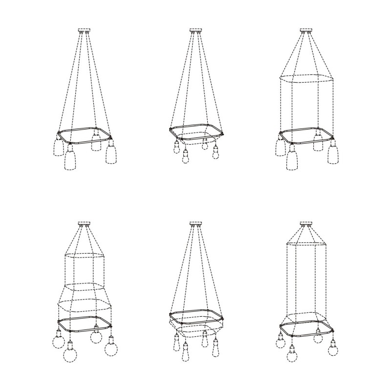Konštrukcia pre sivetidlo v tvare štvorca je jednoduchý, ale revolučný komponent na vytváranie modulárnych závesných lámp. Klietka vyrobená zo 4 prvkov, ktoré sa ľahko montujú, je okrúhla konštrukcia, ktorá drží káble a vytvára kreatívne a originálne tvary. Možnosti vytvárania závesných svietidiel v rôznych tvaroch sú skutočne nekonečné! Tvar a vzhľad lampy budete môcť zmeniť toľkokrát, koľkokrát budete chcieť, jednoduchou úpravou polohy klietky alebo pridaním ďalších štruktúr.