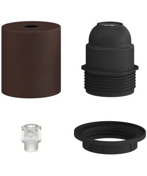 Kovová objímka pre tienidlo so skrytou káblovou svorkou pre žiarovku E27 so skrytou káblovou svorkou slúži na montáž závesného svietidla. Balenie pozostáva z objímky pre žiarovku E27, kovová krytku z kovu a skrytej káblovej svorke. Doplňte svoju inštaláciu osvetlenia komponentami, príslušenstvom, žiarovkami a textilnými káblami z nášho sortimentu. U nás nájdete všetko potrebné na výrobu vlastnej unikátnej lampy.