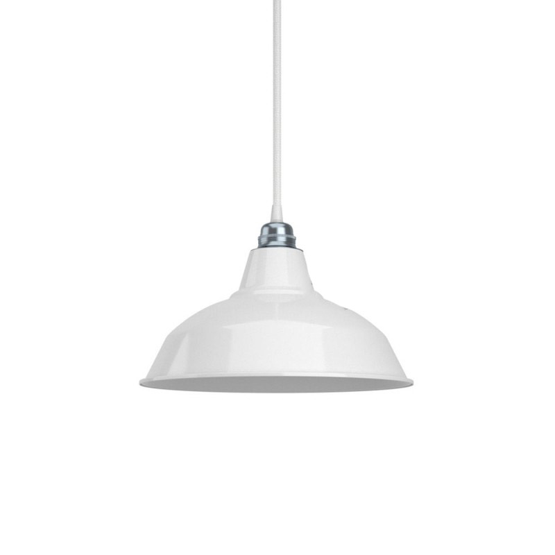 Moderné kovové tienidlo v lesklej bielej farbe s bielym vnútrom, priemer 30cm. Dokonalé zapadá do podkrovných bytov, reštaurácií alebo hotelov. Dodáva ideálny nádych farby k čiernym a bielym stenám. Tvar tienidla je vo Vinage štýle, takže nebude svojim dizajnom a farbou kaziť vzhľad, ale pritiahne oko každého zvedavca.
