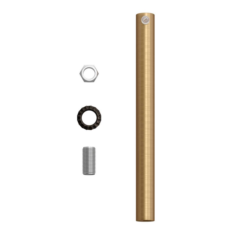 Kovový zámok na odľahčenie kábla 15cm . Jednodielne kovové uchytenie kábla (odľahčenie vodiča svietidla). Jedná sa o zámok s vnútorným závitom, ktorý sa používa na osadenie 1/8 IPS alebo na všetky závitové svietidlá. Ak máte akékoľvek otázky týkajúce sa vašich potrieb jednotlivých projektov, poraďte sa s elektrotechnikom. S použitím nových kovových zámkov s fixačnou skrutkou budú vaše stropné rozety ešte krajšie a elegantnejšie. Spolu so závitovou rúrkou, matkou a podložkou sú kompatibilné s akoukoľvek stropnou rozetou, držiakom alebo objímkou z našej ponuky.