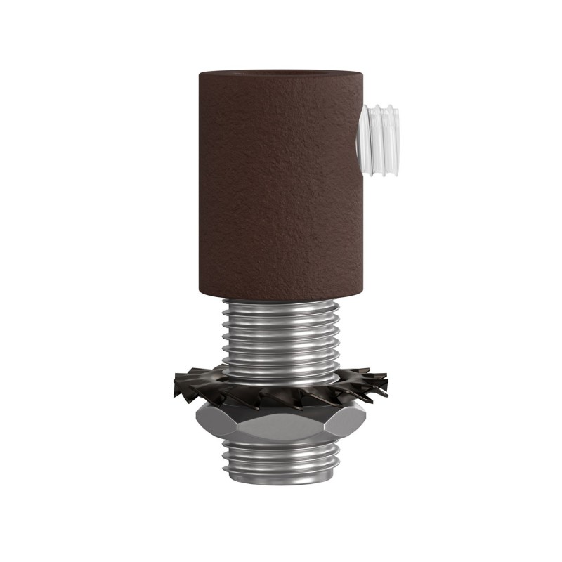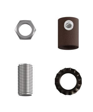 Kovový zámok na odľahčenie kábla . Jednodielne kovové uchytenie kábla (odľahčenie vodiča svietidla). Jedná sa o zámok s vnútorným závitom, ktorý sa používa na osadenie 1/8 IPS alebo na všetky závitové svietidlá. Ak máte akékoľvek otázky týkajúce sa vašich potrieb jednotlivých projektov, poraďte sa s elektrotechnikom. S použitím nových kovových zámkov s fixačnou skrutkou budú vaše stropné rozety ešte krajšie a elegantnejšie. Spolu so závitovou rúrkou, matkou a podložkou sú kompatibilné s akoukoľvek stropnou rozetou, držiakom alebo objímkou z našej ponuky.