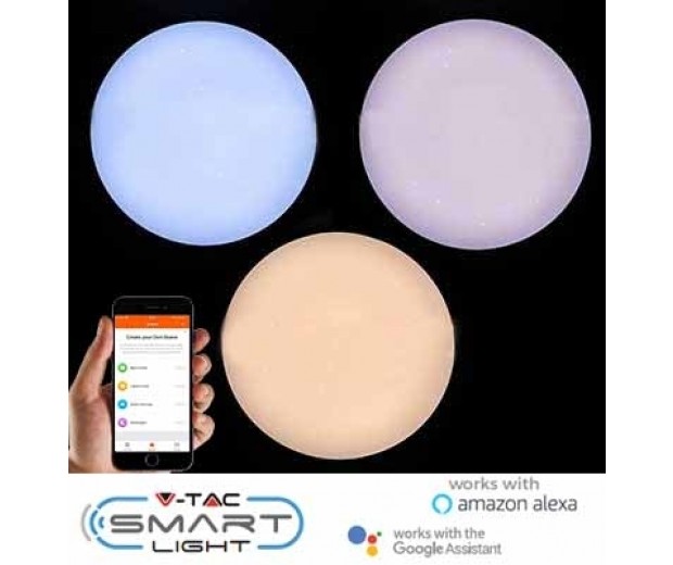 Svetlo kupoly obsahuje bezdrôtový modul 2,4 GHz, ktorý umožňuje pripojenie zariadenia k sieti Wi-Fi. Vďaka Wi-Fi pripojeniu je možné pomocou špeciálnej aplikácie „V-TAC SMART LIGHT / HOME“, ktorú si môžete stiahnuť pre smartfóny iOS a Android, diaľkovo ovládať a riadiť prevádzku LED svietidla. Z aplikácie je možné: zapnúť a vypnúť kontrolku ZAP / VYP; Prepínaním z teplého svetla 2700 K na studené svetlo 6400 K nastavte intenzitu svetla; vytvárať prednastavené scenáre; vložte časovač pre naprogramované zapnutie a vypnutie; zdieľať nastavenia a funkcie s ostatnými zariadeniami v rovnakej sérii.