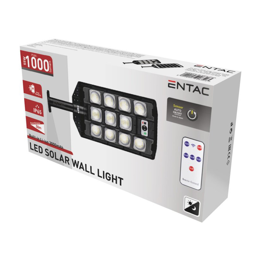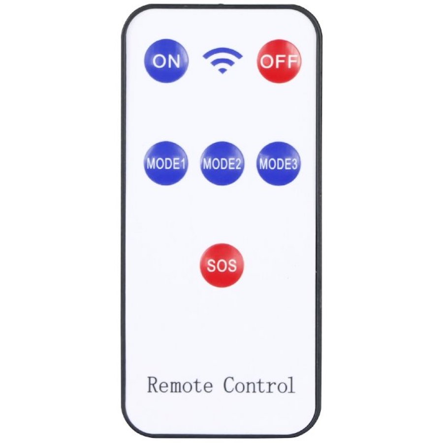 Režim 3:Nepretržitý 50% jas: V tomto režime výrobok funguje ako nepretržite svietiaca lampa s 50% jasom pre dlhodobú prevádzku. Súčasťou výrobku je aj infračervený diaľkový ovládač na zapnutie a vypnutie výrobku a na prepínanie medzi režimami 1, 2 a 3.