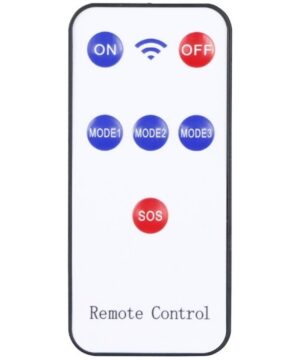 Režim 3:Nepretržitý 50% jas: V tomto režime výrobok funguje ako nepretržite svietiaca lampa s 50% jasom pre dlhodobú prevádzku. Súčasťou výrobku je aj infračervený diaľkový ovládač na zapnutie a vypnutie výrobku a na prepínanie medzi režimami 1, 2 a 3.
