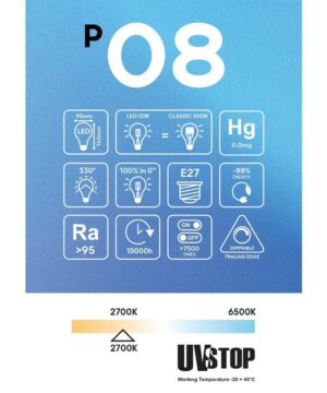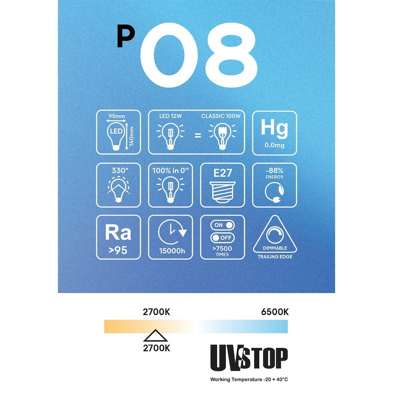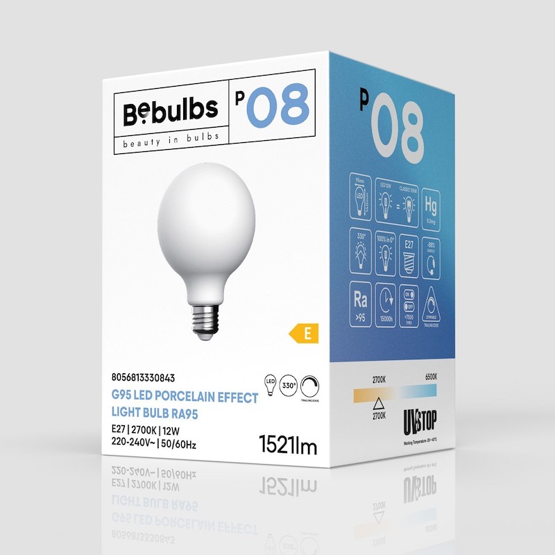 Sklenená povrchová úprava žiaroviek s porcelánovým efektom vyžaruje homogénne svetlo , ktoré rozptyľuje svetlo rovnomerne po celej miestnosti. To je užitočné najmä v prostrediach, kde sa vyžaduje dobré celkové osvetlenie, ako sú kuchyne alebo zasadacie miestnosti. Žiarovky sú navyše stmievateľné, čo znamená, že intenzitu svetla je možné nastaviť podľa potreby. Táto funkcia je užitočná najmä vtedy, keď je potrebné jemné svetlo na vytvorenie romantickej atmosféry alebo na sledovanie televízie v tmavej miestnosti.