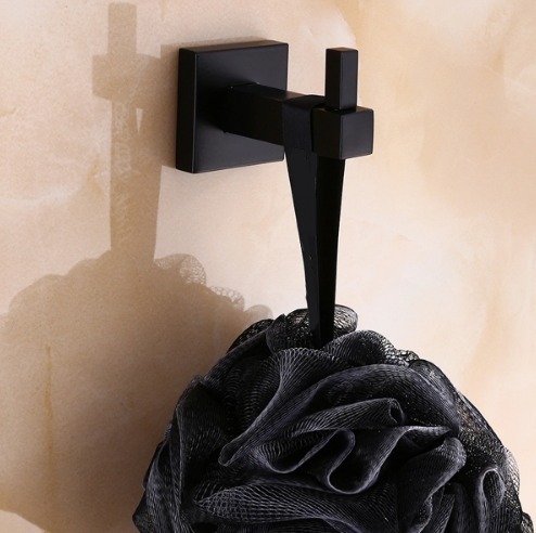 Luxusný oceľový čierny háčik na stenu na uteráky a doplnky