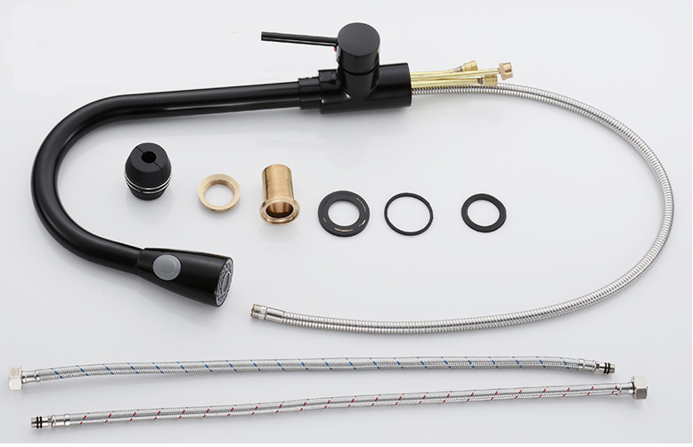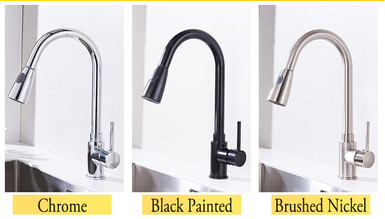Moderná drezová batéria so spŕškou -chróm, nikel, čierna