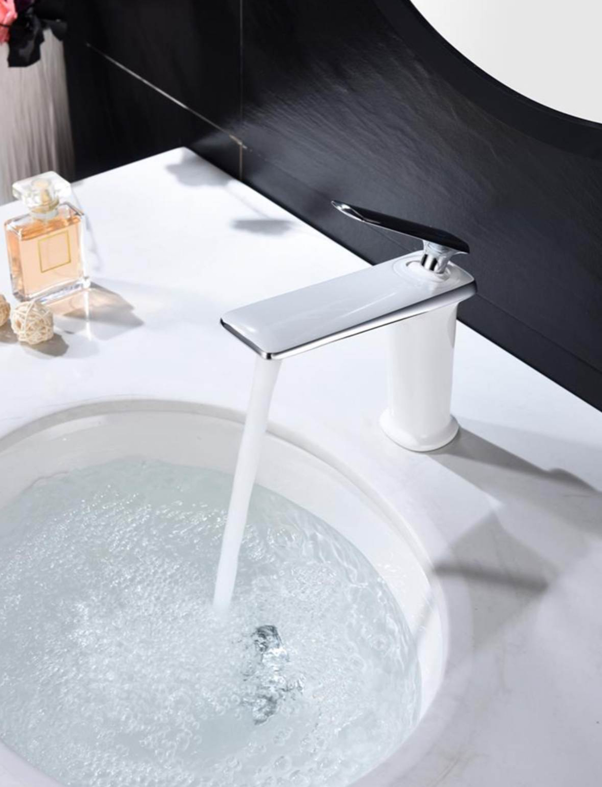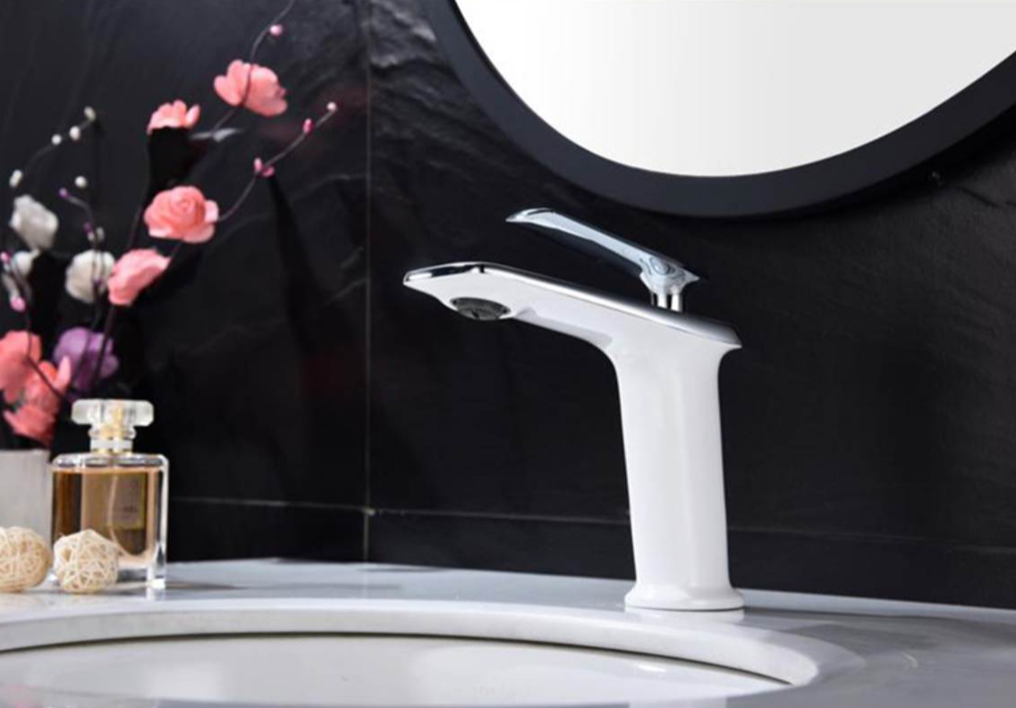 Moderná umývadlová batéria v bielo – chrómovom prevedení