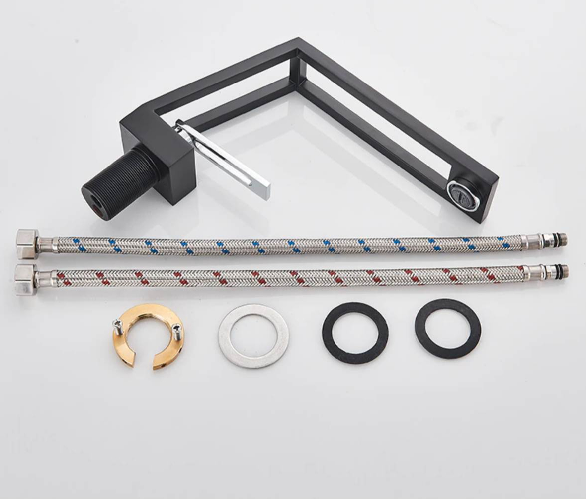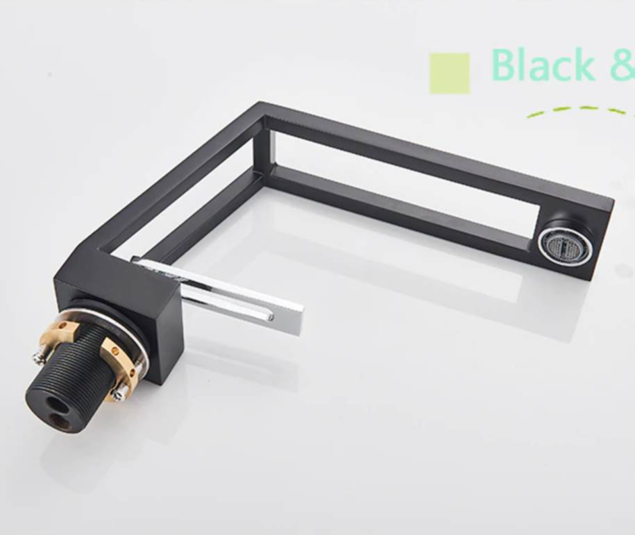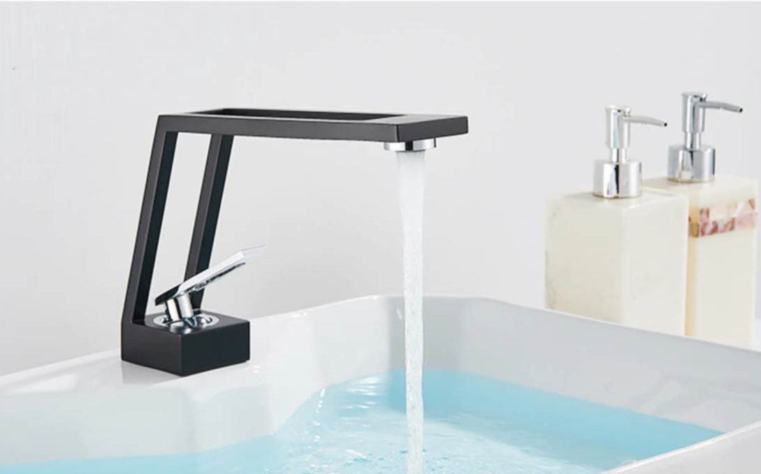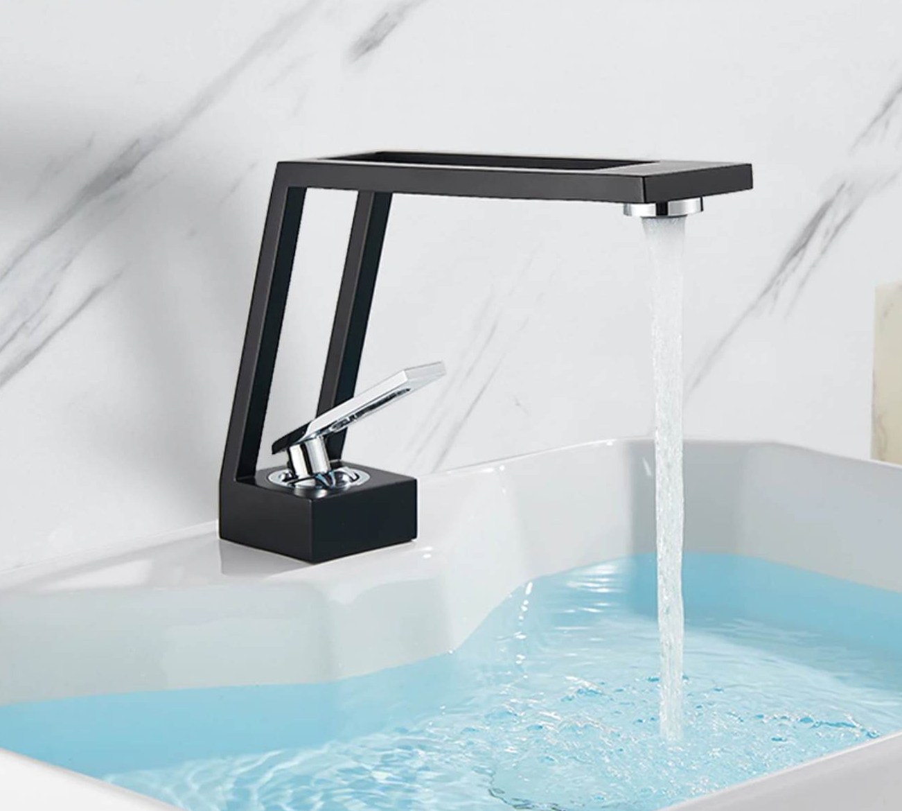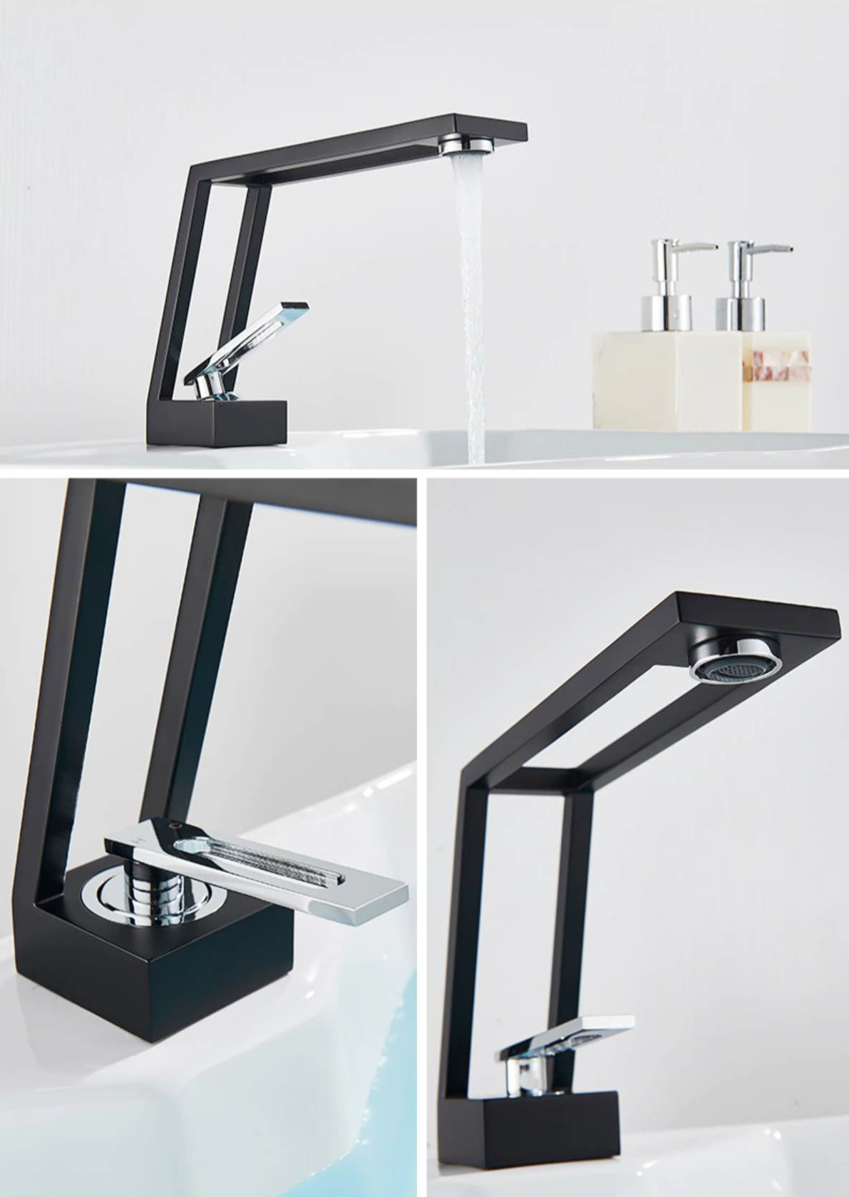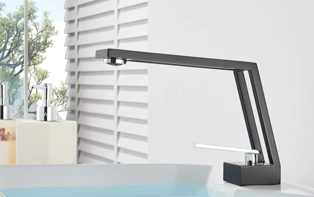 Moderná umývadlová batéria v čierno-chrómovom dizajne