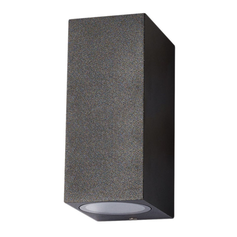 Moderná vonkajšia nástenná lampa VATIA, obojsmerná, IP44 na 2  žiarovky s veľkým závitom GU1o príkone max 10W, fungujúce na napätí 220-240V. Toto vonkajšie svietidlo v tvare modernej lucerny je perfektným riešením pre osvetlenie vchodu do domu, pergoly, terasy, apod. Jedná sa o kvalitné vonkajšie svietidlo ktorého robustné telo je vyrobené z kvalitného kovu, ktorý nehrdzavie. Narozdiel od lacných plastových vonkajších nástenných svietidiel, ktoré pôsobením vonkajších podmienok, najmä slnečného žiarenia, postupne krehnú, menia farbu a rozpadajú sa, toto sa Vám s tým naším naozaj nestane. Kryt žiarovky je vyrobený zo skla. Kryt rozptyľuje svetlo smerom dole a hore.