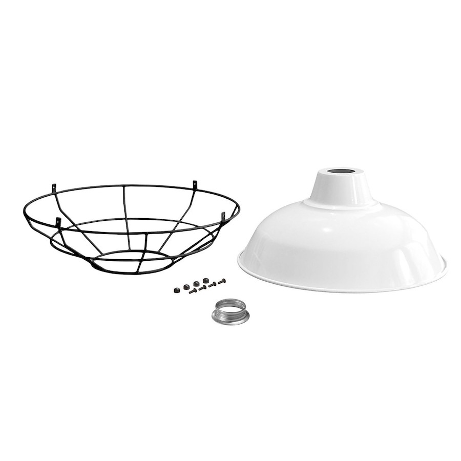 Tienidlo s kovovou klietkou predstavuje súčasnú interpretáciu vnútorného osvetlenia, inšpirovanú estetikou parížskych brasseries a bohémskych kaviarní so silným industriálnym nádychom. Jeho výrazný dizajn sa vyznačuje siluetou obohatenou o kovovú klietku, ktorá ponúka ochranu a osobnosť. Je navrhnuté tak, aby rozptyľovalo svetlo smerom nadol, pridáva sofistikovanú jednoduchosť do každého priestoru a zároveň ponúka vyššiu úroveň bezpečnosti. Ak chcete zmeniť vzhľad tienidla, klietka sa dá ľahko a rýchlo odstrániť (a znova nasadiť).