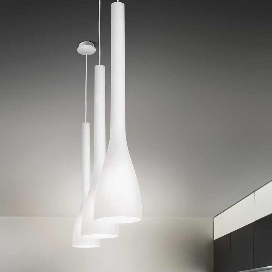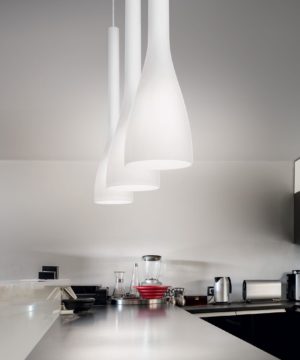 Moderné závesné svietidlo FLUT SP1 SMALL pozostáva z kovovej podstavy a skleneného tienidla. Kábel je výškovo nastaviteľný. Dostupné je v troch farebných prevedeniach, bielej, červenej a čiernej farbe. Svietidlo s kovovou stropnou rozetou a tienidlom s farebným povrchom. Ideálne na osvetlenie kuchynského stola.