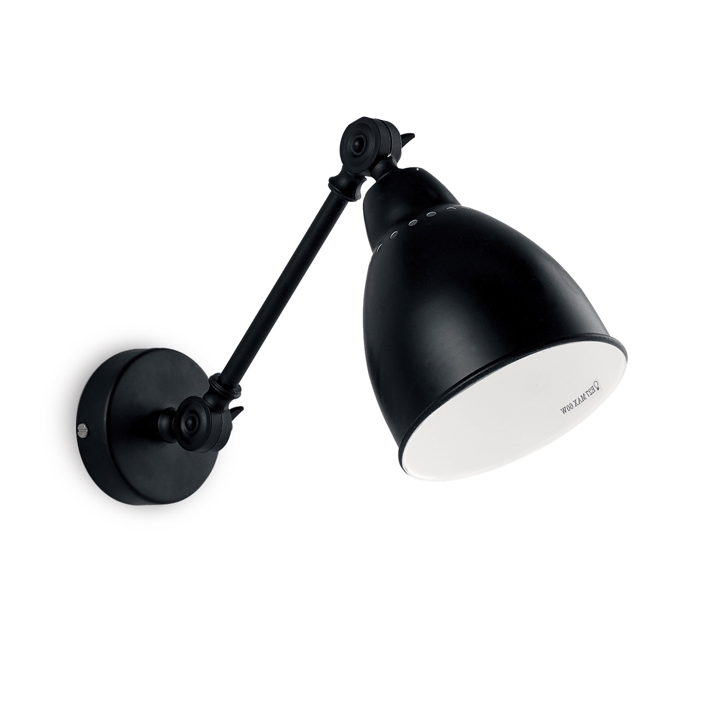 Nástenná retro lampa v čiernej farbe NEWTON AP1. Retro aplikácia s kovovým rámom a tienidlom. Orientovateľné tienidlo. Nastaviteľné rameno.