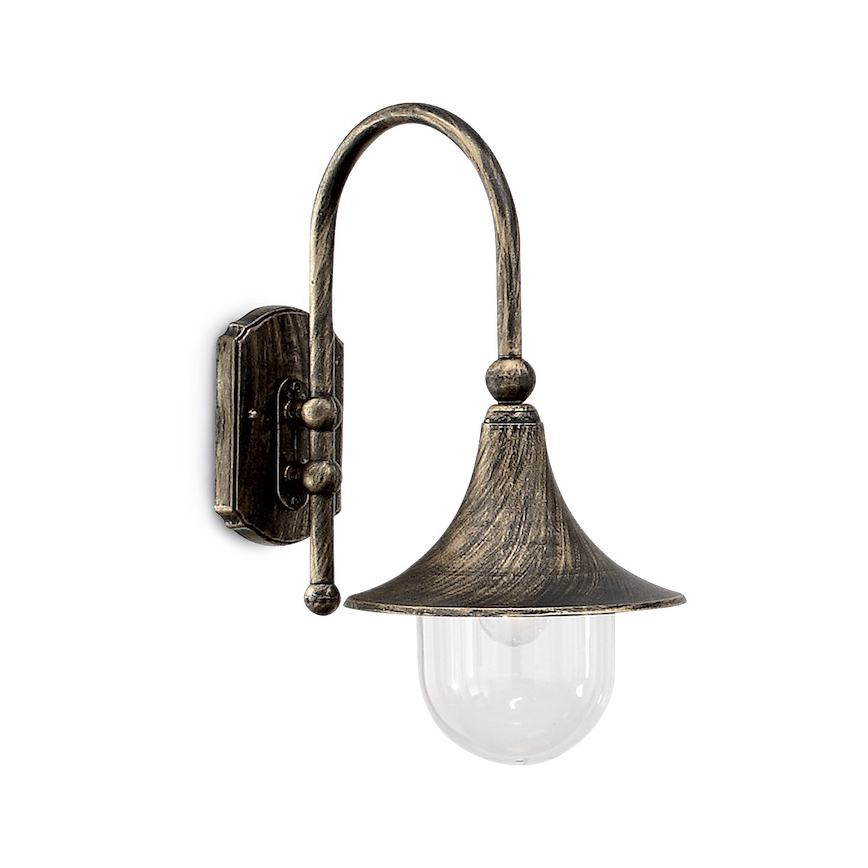 Nástenné vonkajšie svietidlo v antickej čiernej farbe IP43, CIMA AP1. Tlakovo liaty hliníkový rám. Antracitová, kávová alebo anticka čierna povrchová úprava. Priehľadný akrylový difúzor.