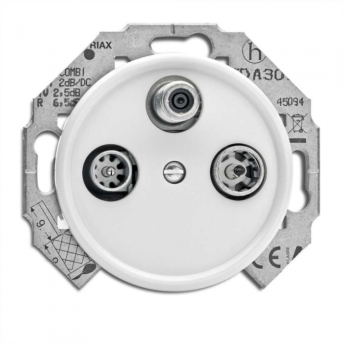 Satelitná zásuvka disponuje konektorom pre televízne,rádiové aj satelitné pripojenie. Vyrába sa iba v jednom prevedení a používa ako samostatná zásuvka.