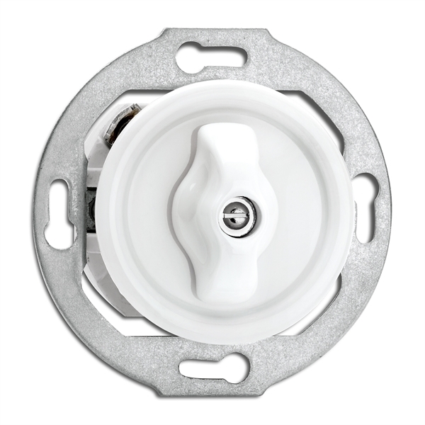Porcelánový retro otočný vypínač (5), (bez rámčeka) biely porcelán