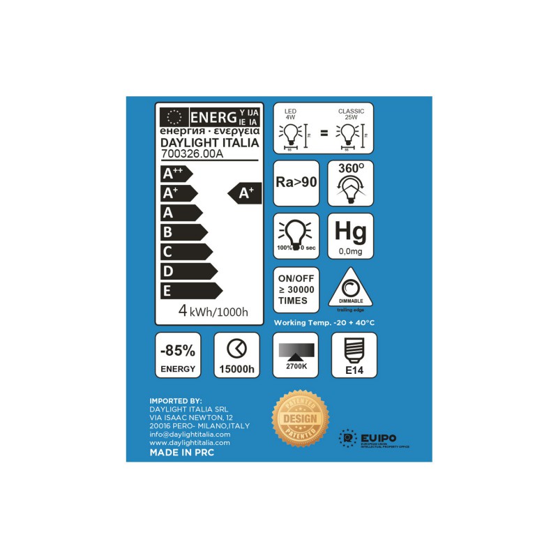 Štýlové žiarovky značky Daylight Italia  vždy upútajú pozornosť ľudí okolo vás a vytvoria štýlové a teplé prostredie. Žiarovky Daylight Italia sú dokonalým príkladom zrelého talianskeho chápania štýlu a módy.