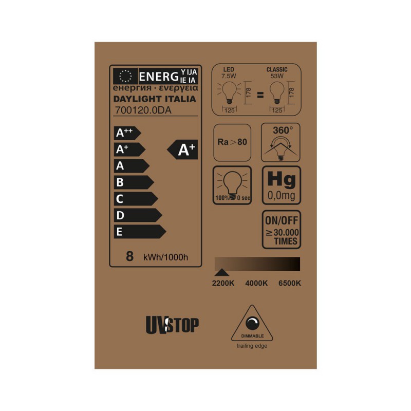 V našich žiarovkách značky Daylight Italia sa stretáva starodávna atmosféra starých žiaroviek s efektívnou spotrebou a dlhou životnosťou moderných LED žiaroviek. Tieto žiarovky spotrebujú len desatinu energie v porovnaní s EDISON modelmi s uhlíkovým vláknom a ich životnosť je až 8x dlhšia. Glóbusové žiarovky v tvare gule sú ideálne pre spojenie s našimi textilnými káblami a komponentami.