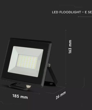 Reflektor LED E-Series 30W, Denná biela, 4000K, 2550lm, čierny. Ultra tenká konštrukcia z tlakovo liateho hliníka v bielej farbe má kryt z priehľadného skla SMD. Tenký dizajn ho robí ľahším ako bežný maják a ľahšie sa inštaluje na stenu (dodáva sa s držiakom na upevnenie). Okrem toho je odolný voči vode (IP65 & IK06), a preto môže byť inštalovaný aj vo vonkajších priestoroch, ako sú záhrady, dvory, vily atď. Skvelý vo video monitorovacích a bezpečnostných systémoch, vzhľadom na nízku absorpciu môže byť ponechaný nepretržite.