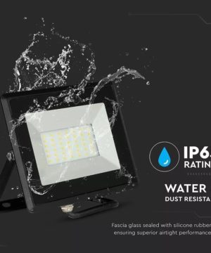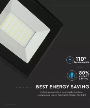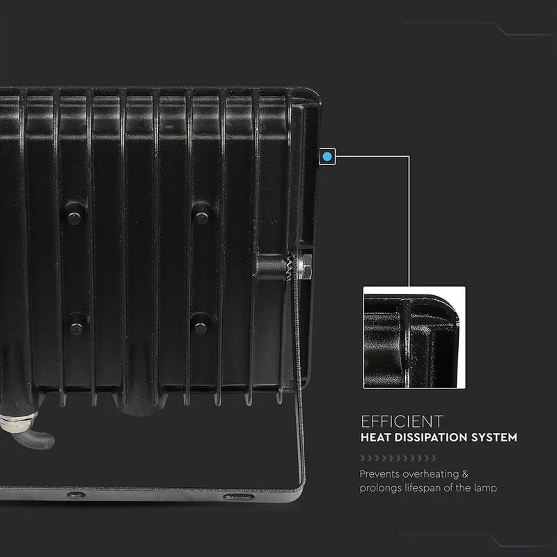 Reflektor LED E-Series 50W, Denná biela, 4000K, 4250lm, čierny. Ultra tenká konštrukcia z tlakovo liateho hliníka v bielej farbe má kryt z priehľadného skla SMD. Tenký dizajn ho robí ľahším ako bežný reflektor a ľahšie sa inštaluje na stenu (dodáva sa s držiakom na upevnenie). Okrem toho je odolný voči vode (IP65 & IK06), a preto môže byť inštalovaný aj vo vonkajších priestoroch, ako sú záhrady, dvory, vily atď. Skvelý vo video monitorovacích a bezpečnostných systémoch, vzhľadom na nízku absorpciu môže byť zapnutý nepretržite.