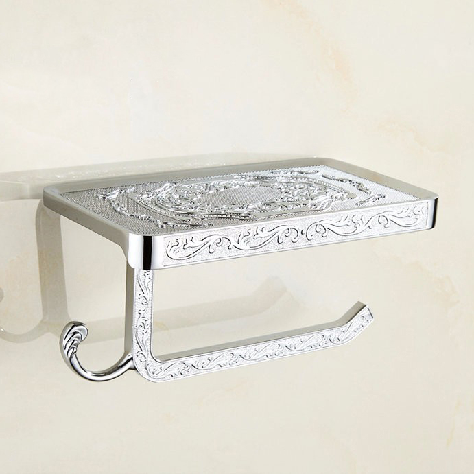 Retro držiak na toaletný papier + stojan na mobilný telefón v striebornej farbe