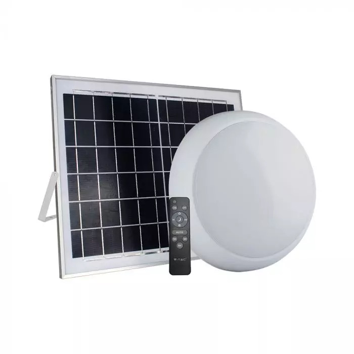 Stropné LED svietidlo so solárnym panelom s možnosťou montáže na strop alebo na stenu. LED solárne stropné kupolové svetlo 15W výkon 3v1 funkcia zmeny farby s vlastným napájaním pomocou nabíjacej batérie s 10W solárnym panelom a RF diaľkovým ovládačom pre diaľkové ovládanie funkcií: ON/OFF, automatický režim, funkcia časovača a intenzita svetla úprava. Vyrobené z pevného bieleho plastu s nepriehľadným led krytom (Milky Cover).