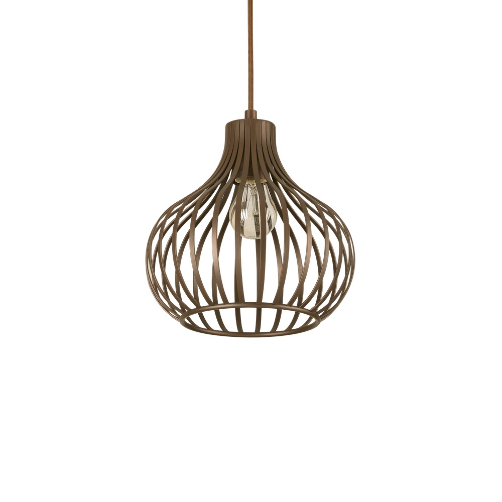 Svietidlo závesné ONION SP1 D23 v hnedej farbe. Kovový rám zakončený hnedým lakom s kovovým efektom. Silový kábel potiahnutý tkaninou.