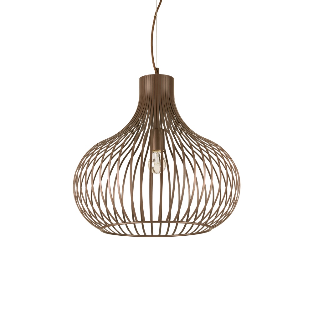 Svietidlo závesné ONION SP1 D48 v hnedej farbe. Kovový rám zakončený hnedým lakom s kovovým efektom. Silový kábel potiahnutý tkaninou.