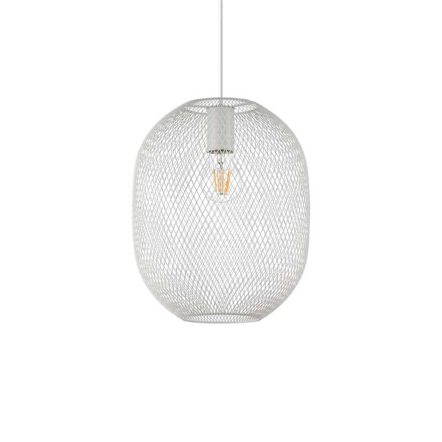 Rozeta vyrobená z matne lakovaného kovu dodáva lampe pevnú a modernú štruktúru. Výškovo nastaviteľný a predlžovací PVC kábel umožňuje prispôsobiť svietidlo vašim potrebám a vlastnostiam vášho priestoru. Difúzor vyrobený z matnej lakovanej kovovej sieťoviny dodáva celkovému dizajnu nádych modernosti a rafinovanosti.