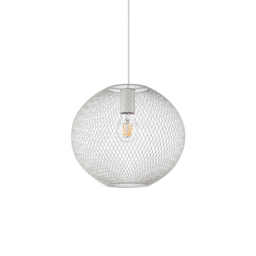 Rozeta vyrobená z matne lakovaného kovu dodáva lampe pevnú a modernú štruktúru. Výškovo nastaviteľný a predlžovací PVC kábel umožňuje prispôsobiť svietidlo vašim potrebám a vlastnostiam vášho priestoru. Difúzor vyrobený z matnej lakovanej kovovej sieťoviny dodáva celkovému dizajnu nádych modernosti a rafinovanosti.