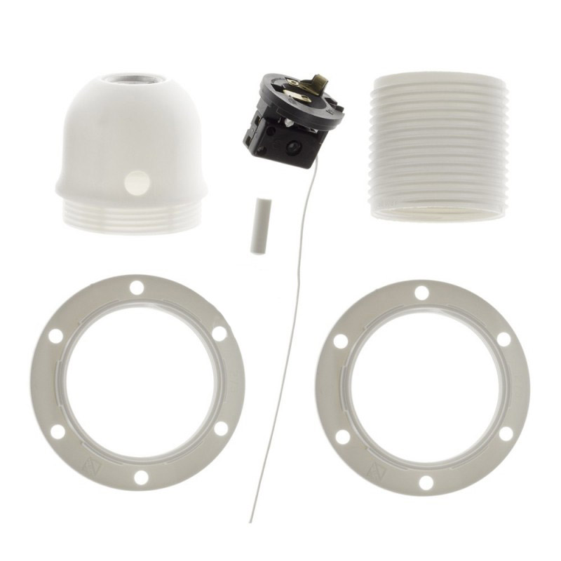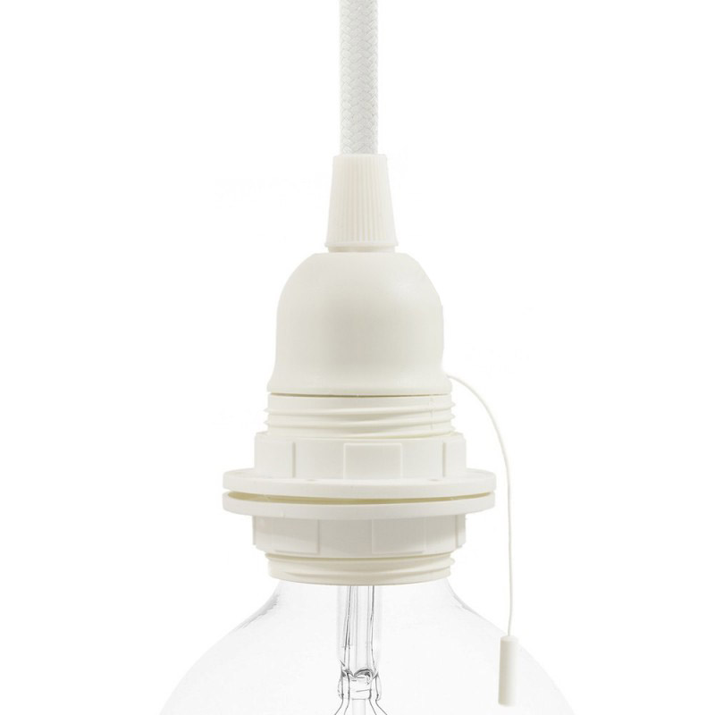 Termoplastová objímka E27 s ťahacím vypínačom a krúžkami pre tienidlo. Vypínač umožňuje zapínanie a vypínanie svetla priamo na objímke, vďaka čomu z nej môžete vyrobiť závesnú alebo stolnú lampu s vlastným spínačom. Vyrobená v Taliansku a je certifikovaná v súlade s najprísnejšími európskymi normami (IMQ-ENEC).