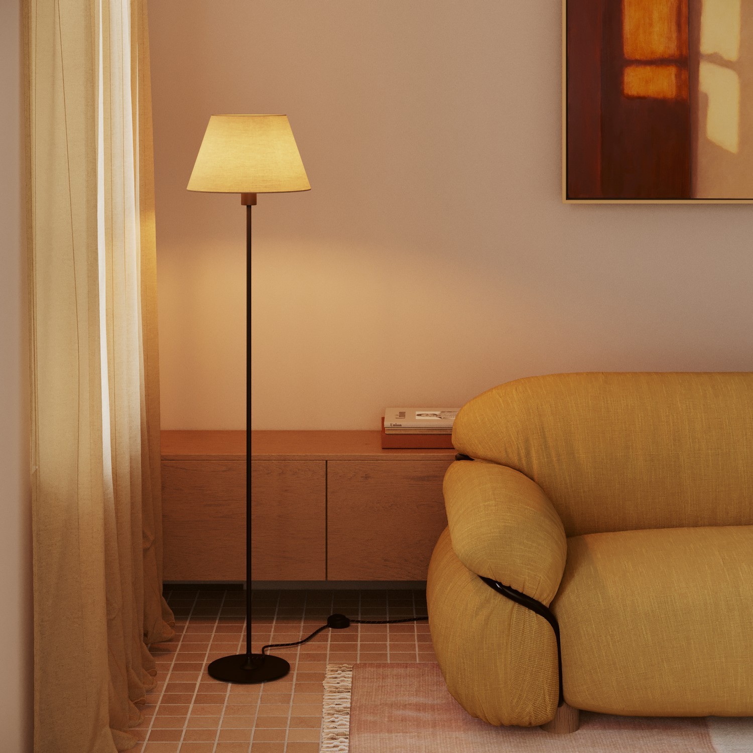 Ideálne pre stojanové lampy, ktoré chcú dodať priestoru scénický akcent, prináša teplo a osobitosť do každého prostredia a rozpráva príbeh talianskej vášne a kreativity.
