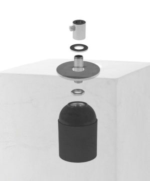 Tienidlo z betónu Valec môže byť použité so žiarovkami s maximálnym priemerom 95 mm a je dodávané s podložkou, dutou závitovou tyčkou, káblovou svorkou a hladkou bakelitovou E27 objímkou s IMQ certifikátom.